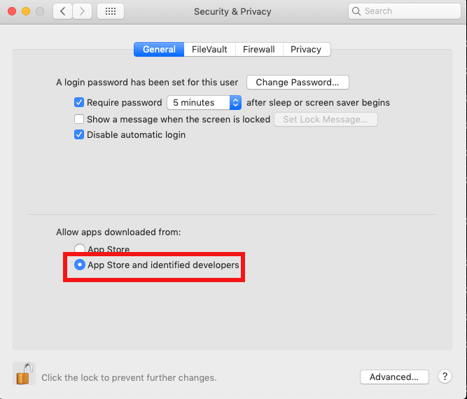 Sélectionnez l'option "App Store et développeurs identifiés" :