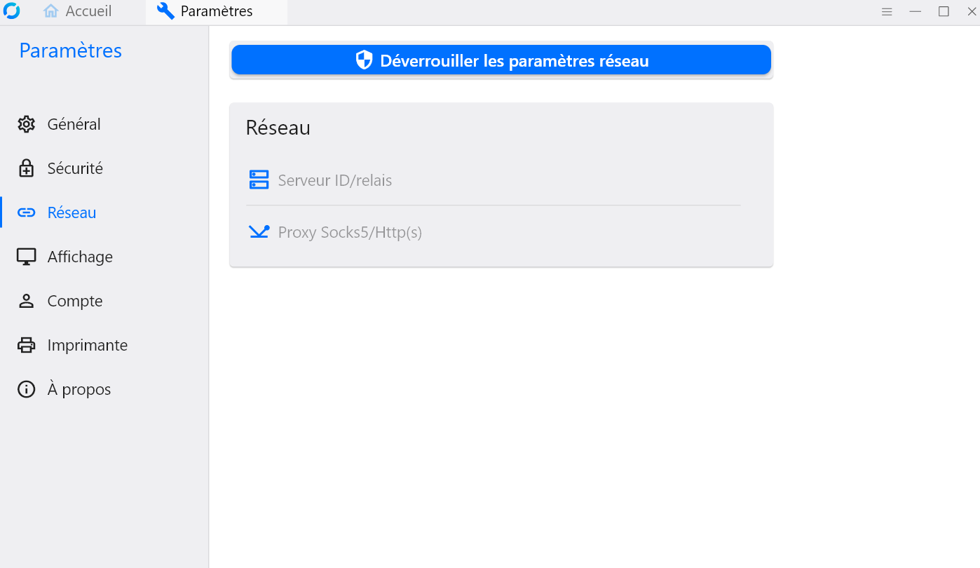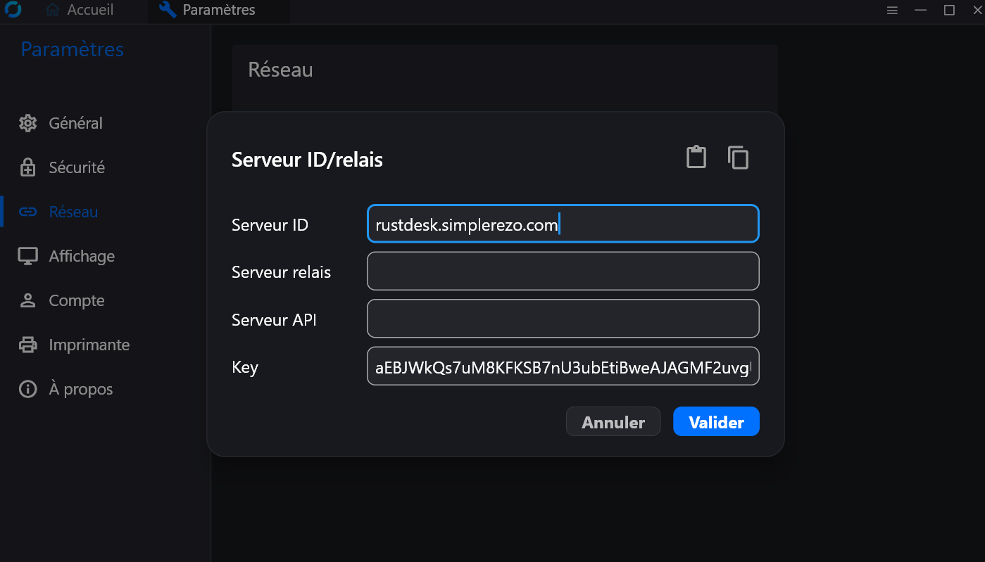 Toujours sur Rustdesk, cliquez sur les 3 petits points et sélectionnez ID/Serveur Relais: