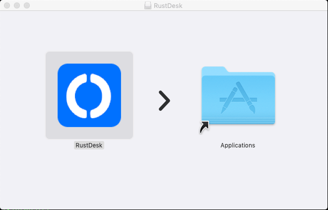 - The following screen should then be displayed: drag the rustdesk icon on the applications icon.
